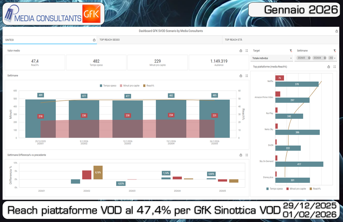 Reach piattaforme VOD per GfK Sinottica VOD.